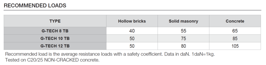 | 131875 | G-TECH 12 TB | Masonry, non-cracked concrete | Aggiungi / Rimuovi |