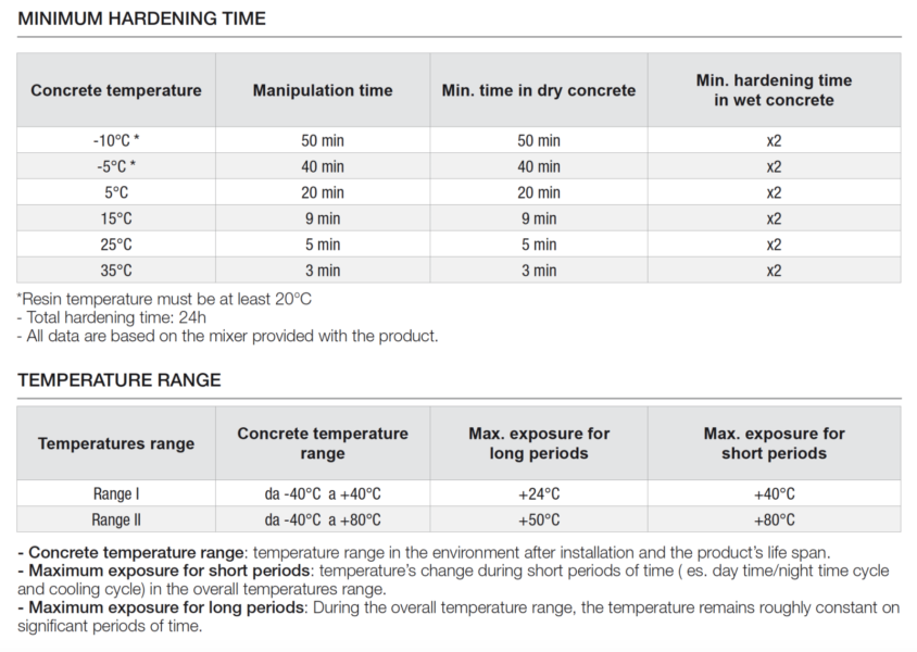 - Since this kind of supports can be very different from each other in terms of composition and structure, the amount of load that can be supported by the chemical anchor depends on the kind of support itself. Therefore, it is recommended to test the product on site in order to estimate the average fixing payload on wood.