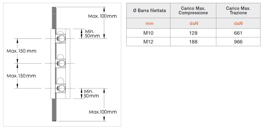 - Il bullone di rinforzo è adatto a barre filettate M10 e M12.